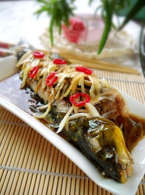 4.热锅沥干油,直到油冒烟(一定要足够热),第四步和第三步同时进行。5.第三步后关火,打开锅盖,在第二次蒸好的鱼上放葱丝,倒入热油,然后在鱼上均匀淋上酱油。6.最后盖上锅盖,不用火焖3分钟。本方功效:黄颡鱼味甘、性平,能益脾胃、利水消肿。“林逸瑶姬”治水气浮肿,即把黄颡鱼与绿豆、大蒜混合,水煮,去鱼去豆,取汁与商陆混合。