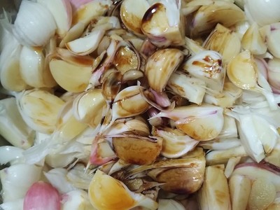 1。原料:大蒜500克。2.调料:糖80克,醋100毫升,盐50克,酱油100毫升。3.蒜瓣洗净,去皮后留一层衣服,再加盐。4.用盐腌12小时,把腌好的盐水倒掉。5.将酱油、糖和醋煮沸,冷藏。6.将腌制的大蒜瓣加入一个干净的容器中。7.倒入凉透的糖,浸泡十几天。