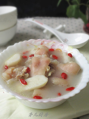 材料猪蹄1只,当归20克,葱姜若干做法1。猪蹄洗净,切成大块,放入沸水中煮两分钟,去腥,捞出。是的,你可以。做法猪蹄1000克,山药500克,大枣40枚,料酒25克,酱油60克,葱20克,姜10克,味精、花椒、八角、茴香各少许,盐适量。做法:1。山药、大枣洗净,放入碗中用清水浸泡;2.猪蹄洗净,四煮,捞出,用酱油拌匀;