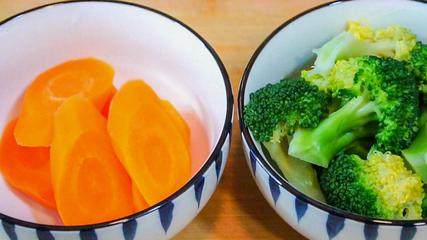 1。西兰花胡萝卜粥食材:大米50g、西兰花、胡萝卜、水、盐。步骤:分别将西兰花和胡萝卜切丁。把米洗干净,放入电饭锅,加点水,按下按钮煮粥。米饭煮开后,放入胡萝卜丁,再放入西兰花,煮至软烂。放入碗中,根据个人口味加入少许盐。2、水煮西兰花胡萝卜食材:胡萝卜半根、西兰花100克、盐、香油、黑胡椒。