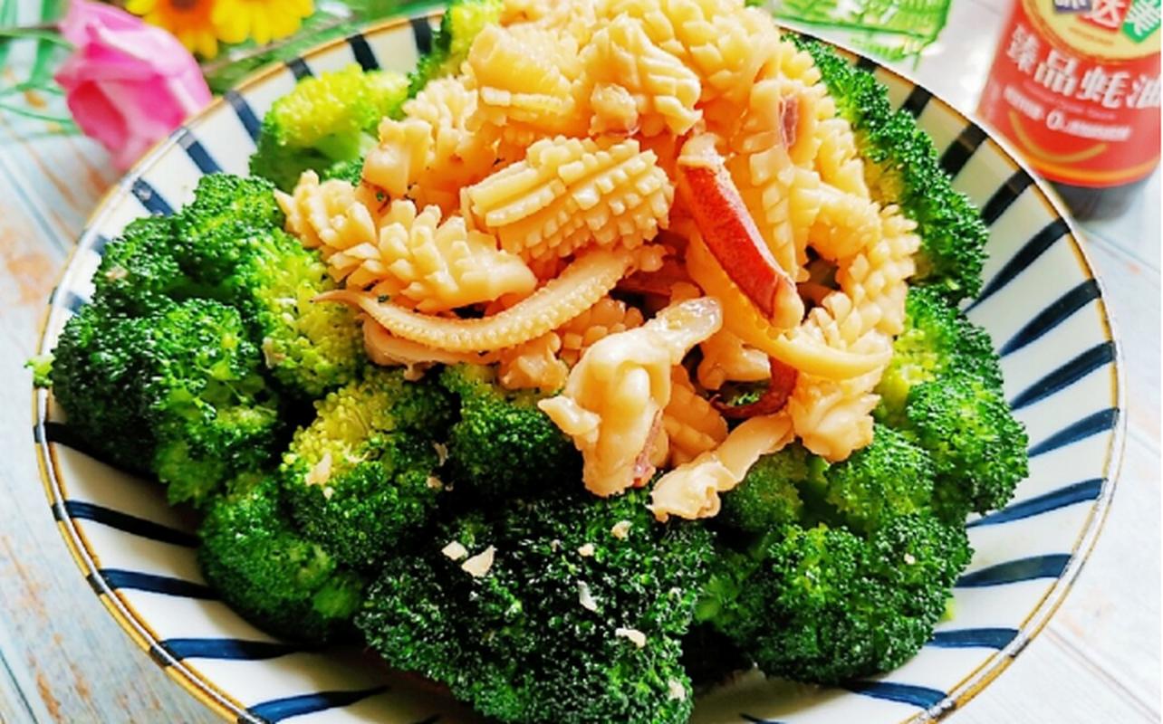 3. 补充营养:西兰花富含维生素C、维生素K、叶酸和钙等营养素,而鱿鱼则富含蛋白质、钾和硒等营养素。