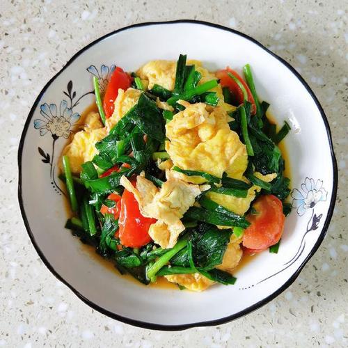 西红柿韭菜炒鸡蛋是一道常见的家常菜,它的功效和作用如下:
