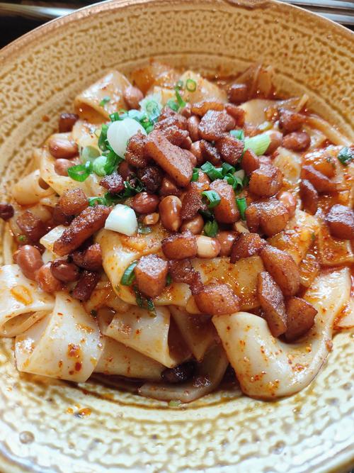 刘二妈米皮肉丁是一道贵州特色小吃,主要由米皮、猪肉丁、豆腐干、木耳、辣椒等食材制作而成。其主要功效和作用包括: