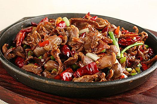 铁板鸡杂是一道美食,主要由鸡肝、鸡心、鸡胗等杂碎制成,经过烹饪后味道鲜美,营养丰富。其功效和作用如下: