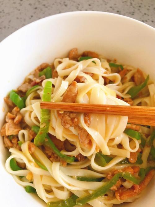 2. 补充蛋白质:青椒肉丝捞面中含有丰富的肉类和豆制品,可以为人体提供必需的蛋白质。