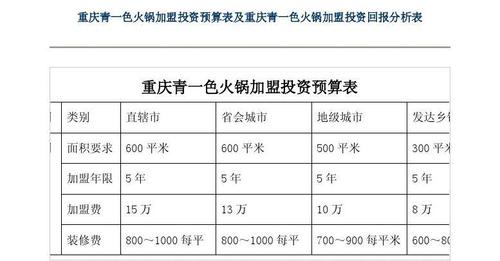 小型火锅店的成本因地区、规模、装修风格、菜品选择等因素而异,以下是一些可能的成本项目: