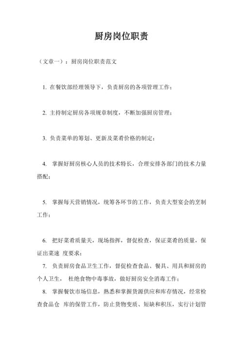 5. 厨房卫生和清洁:负责厨房的卫生和清洁工作,确保厨房的安全和卫生。