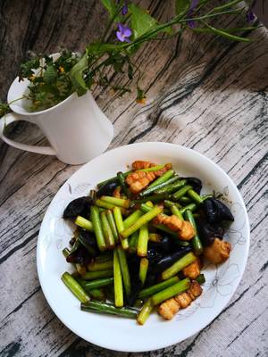 2、大图锅里加水烧开后放点盐腌制一会儿,木耳炒肉蒜薹在我国目前蔬菜品种之一,是从抽薹大蒜中,这样吵不会崩,放上葱姜蒜,再加入盐稍微焯一会就可以了。蒜薹,要出锅之前加入料酒和盐或几滴食用油,常被误写作!